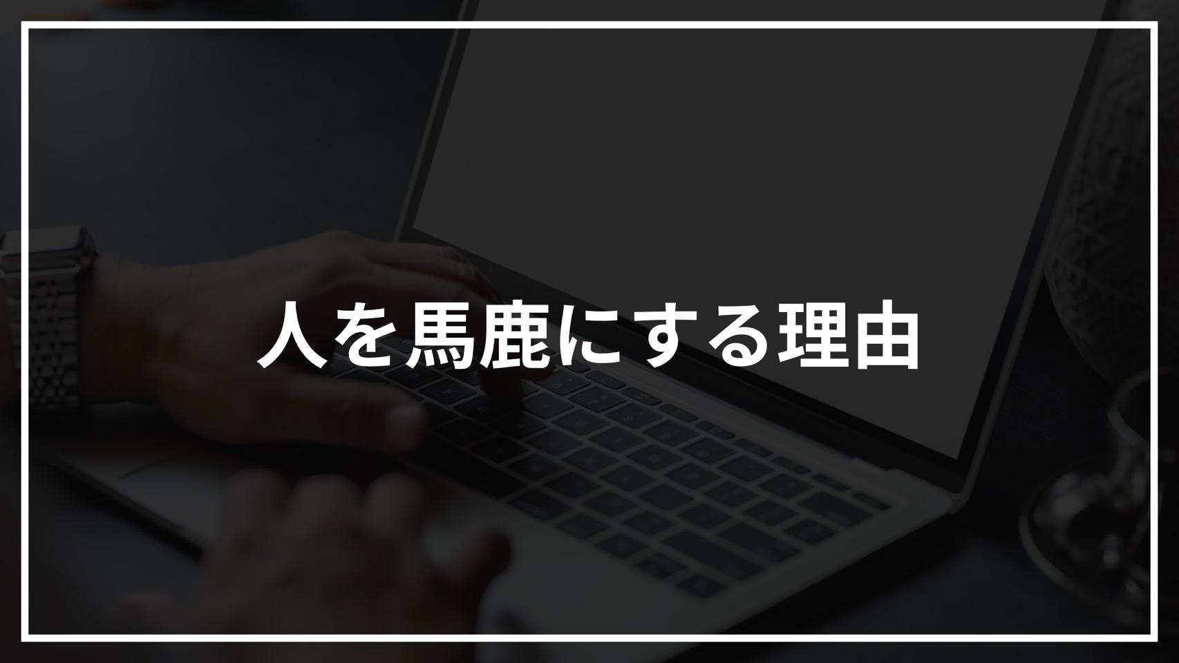 こんにちは。今回は人を馬鹿にする人の考えやし好について私なりの意見を述べさせていただきます。みなさんが今まで馬鹿にしてしまったこともしくは馬鹿にされたこと色々思い返してその時の自分の気持ちを誰にも言わなくてもいいので見つめなおしてみてください。